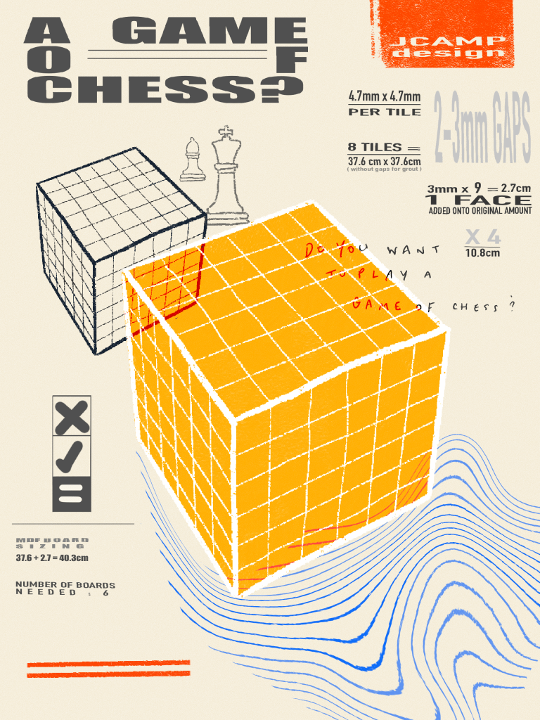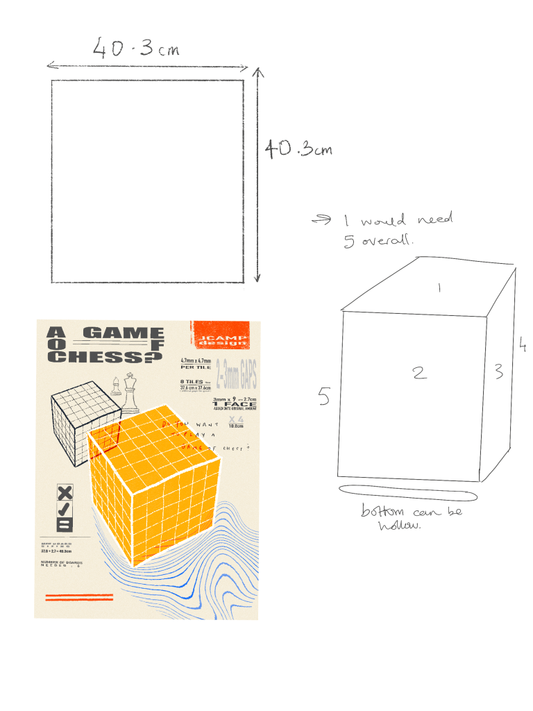 Creating a repeated square pattern made from tiles – resembling a chess board is the goal for this bedside table – eventually there will be pieces and a rule book to play on the surface of this table.