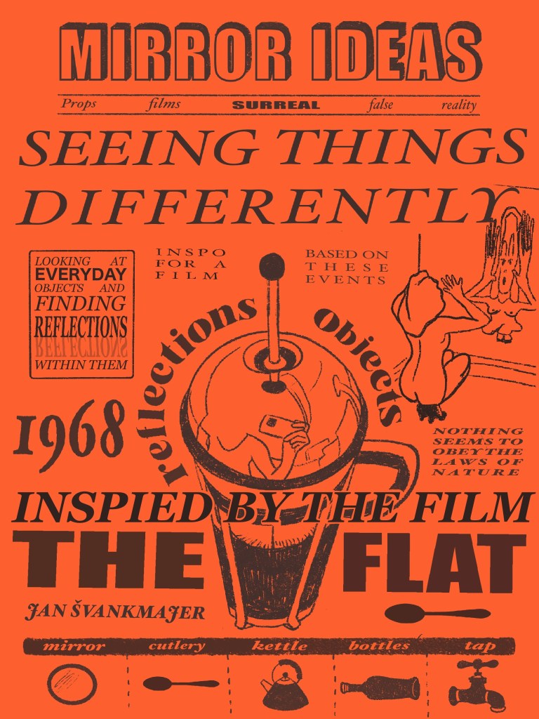 Having watched the surrealistic film The Flat by Jan Švankmajer the scene with the mirror has really inspired me to make my own film. The protagonist in Švankmajer’s film looks into a mirror – instead of seeing his reflection as it is, he sees the back of himself instead. The nonsensical fact that this happened, made the protagonist question why it was happening. In a lot of surrealist films, there are surreal events occurring one after the other and they are made to seem completely normal. I really enjoyed the fact that the film explored the fact that it wasn’t normal and the fact that it shouldn’t have been happening.