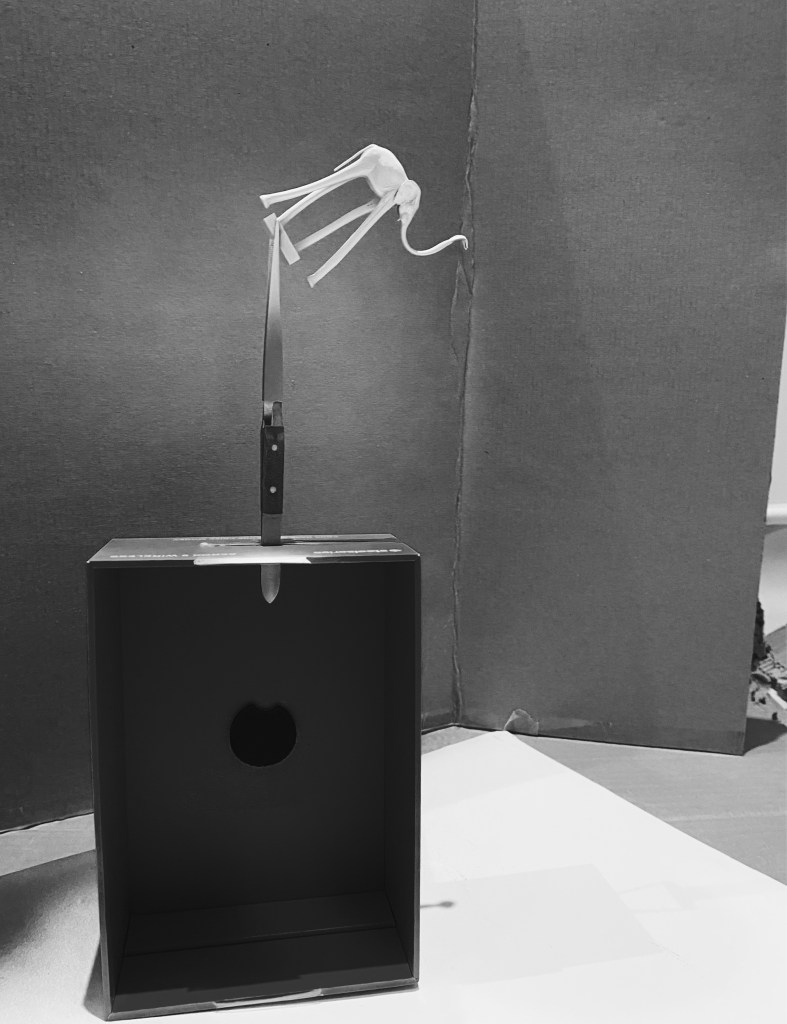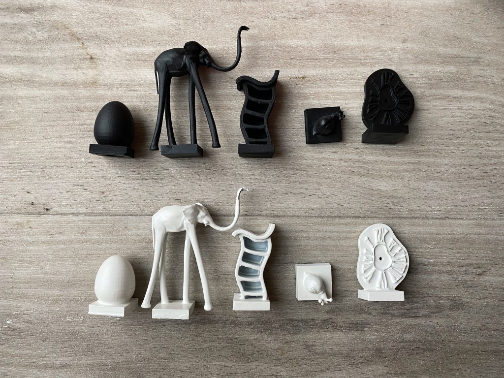 To make the chess pieces, I have decided to 3D print them. Luckily I had help – my partner showed me how to use the software and explained how the printing works. So first thing’s first – I had to model the pieces using the softwares Mesh mixer, sketchup and 3D builder. Once I was happy with their shape, they were transported to a software called….. where I could preview what they would look like once printed. The software also tells you where the most fragile pieces of the structure are and allow you to add supports of different strengths. Due to the side of these pieces, I applied the thinnest possible supports meaning that they could be removed easier when it came to it. The software also provided the time it would take to print these pieces. And the elephant as shown below, took 4 hours alone. Once the elephant had printed, the base it was on was too large and completely covered a tile on the table. I wanted to be able to see the table underneath as I went through so much work to get the table where it is so I marked where I wanted the base to be and altered it later on.