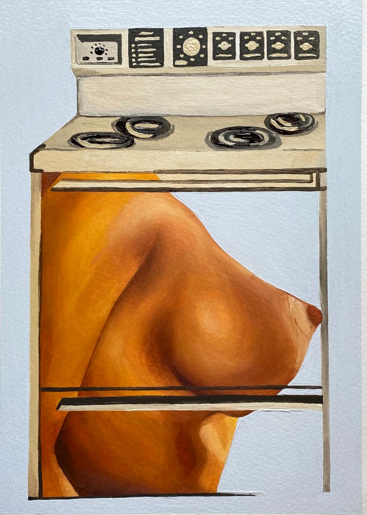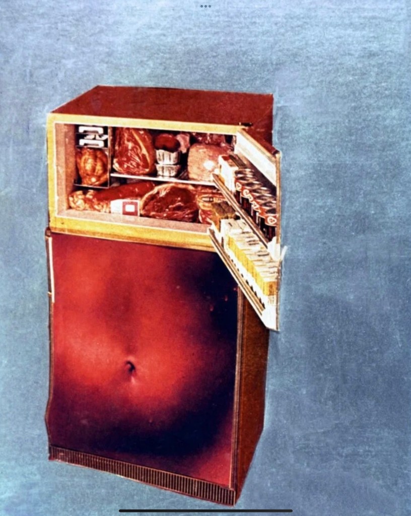 Image 5 shows a print that contains a breast on a cooker – the title of the work, Kitchen I or Hot Meat, is a neat analogy for the sexual politics and unreconstructed male views of women prevalent at the time. I have been really inspired by these images and really see it being used as the art work to my surreal room for my end of year show. Martha Rosler’s works are heavily based on politics and addressing sexist concerns in society. Seeing as my theme is surrealism, at the moment I’m not sure how to approach making my own. I love the idea of manipulating the use of everyday objects and the image above is how I’ve drawn inspiration on this idea – cooker = woman’s body.