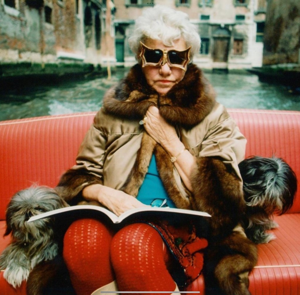 Peggy Guggenheim was a fashion icon and was know for her extensive collection of out-there accessories. She commissioned painter Edward Melcarth to create bat-wing and butterfly eyeglasses, and her pouf of white hair, red lipstick, and extravagant earrings, they became her signature.